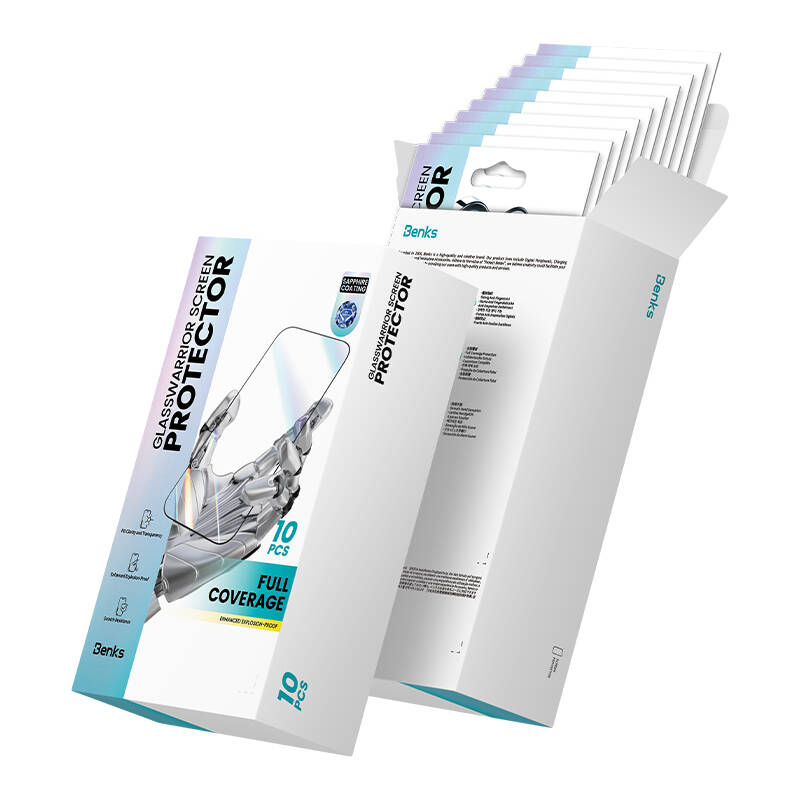 Benks Glass Warrior Safir Coating Ekran Koruyucu, telefonunuzun ekranını korumak için tasarlanmış en son teknolojiye sahip bir üründür. 10’lu paket halinde toptan alışlarınız için kutulu hale getirildi. Crystacle™ safir-benzeri kaplama teknolojisi ile üretilen bu ekran koruyucu, sadece darbelere ve çizilmelere karşı mükemmel bir direnç sağlamakla kalmaz, aynı zamanda dokunuşlarınızda ve ekranınıza her baktığınızda lüks bir his sunar. Doğanın saf gücü ve ince işçiliği, bu ekran koruyucuda hayat buluyor.