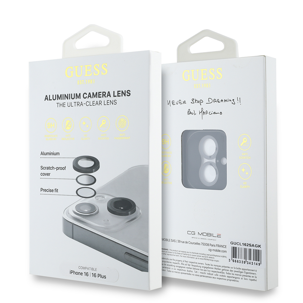 Apple iPhone 16 Plus Guess Orjinal Lisanslı Metal Kamera Lens Koruyucu