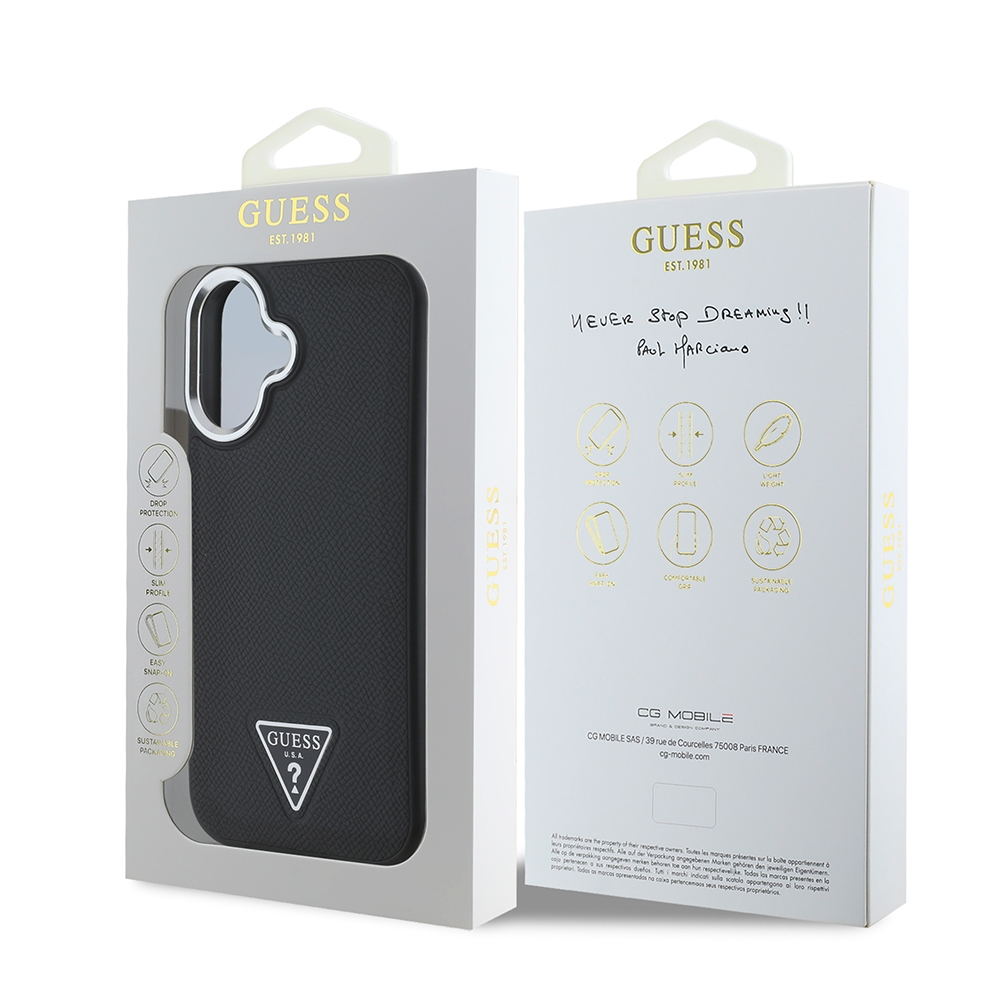 Apple iPhone 16 Plus Kılıf Guess Orjinal Lisanslı M-safe Şarj Özellikli Grained Triangle Kapak