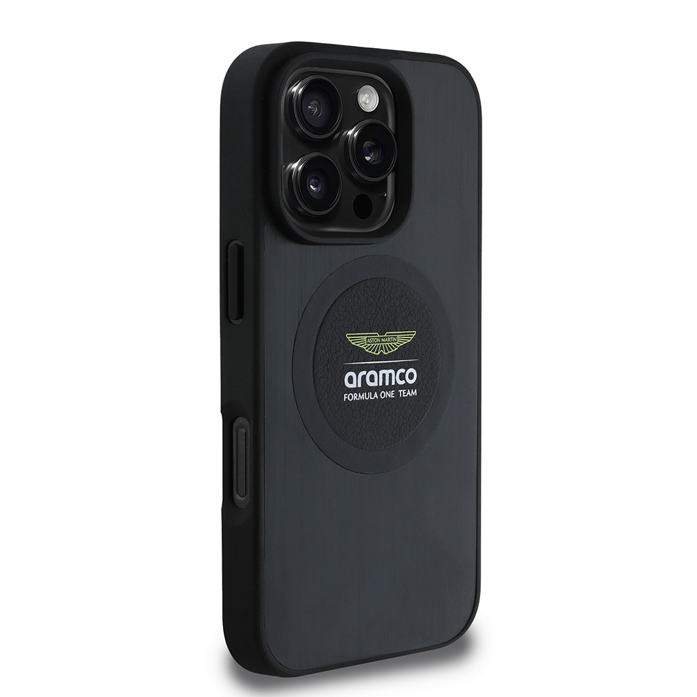 Apple iPhone 16 Pro Max Kılıf Aston Martin Orjinal Lisanslı M-safe Şarj Özellikli Aluminyum Arka Yüzeyli Formula One Team Baskılı Kapak