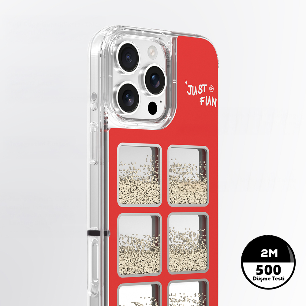 Kalınlaştırılmış çerçevesi ve yükseltilmiş kamera kenarları ile tam koruma sağlayan bu kılıf, 2 metreye kadar düşmelere karşı dayanıklılık testlerinden başarıyla geçmiştir. Toplamda 500 farklı düşme senaryosunda test edilen dayanıklı yapısı sayesinde, yoğun şehir temposunda da güvenle kullanılabilir.